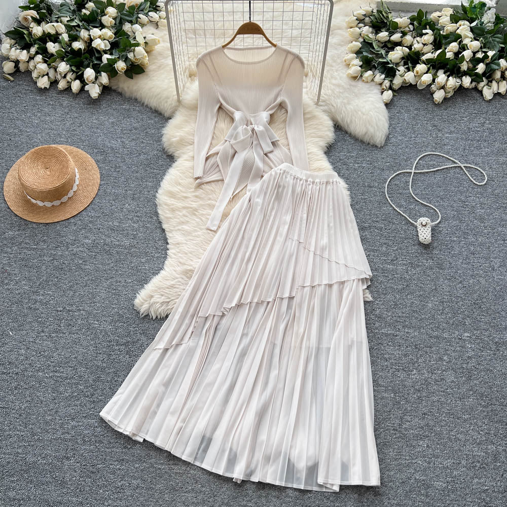 Design Sense T-Shirt With Irregular Hem Pressure Folding Blouse High-Waisted Half-Body Skirt