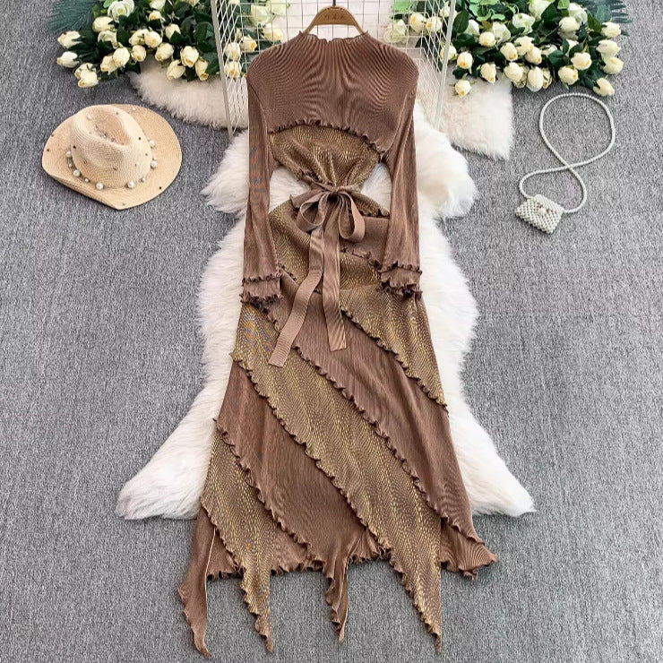 AM040503 Summer New Sexy Hollow Half-High Collar Dress Party Dinner Nail Beads High Waist Dress Dress HZ0107