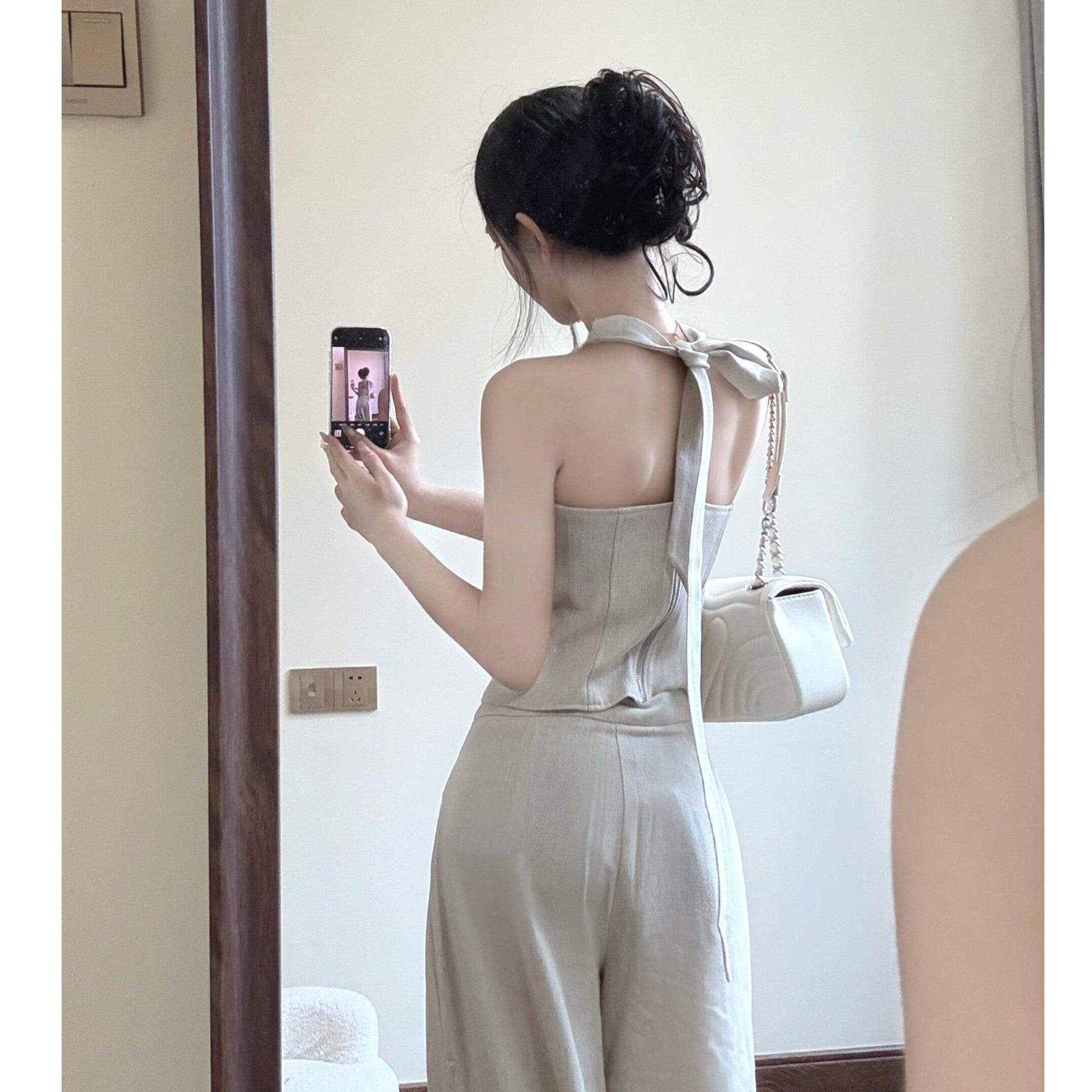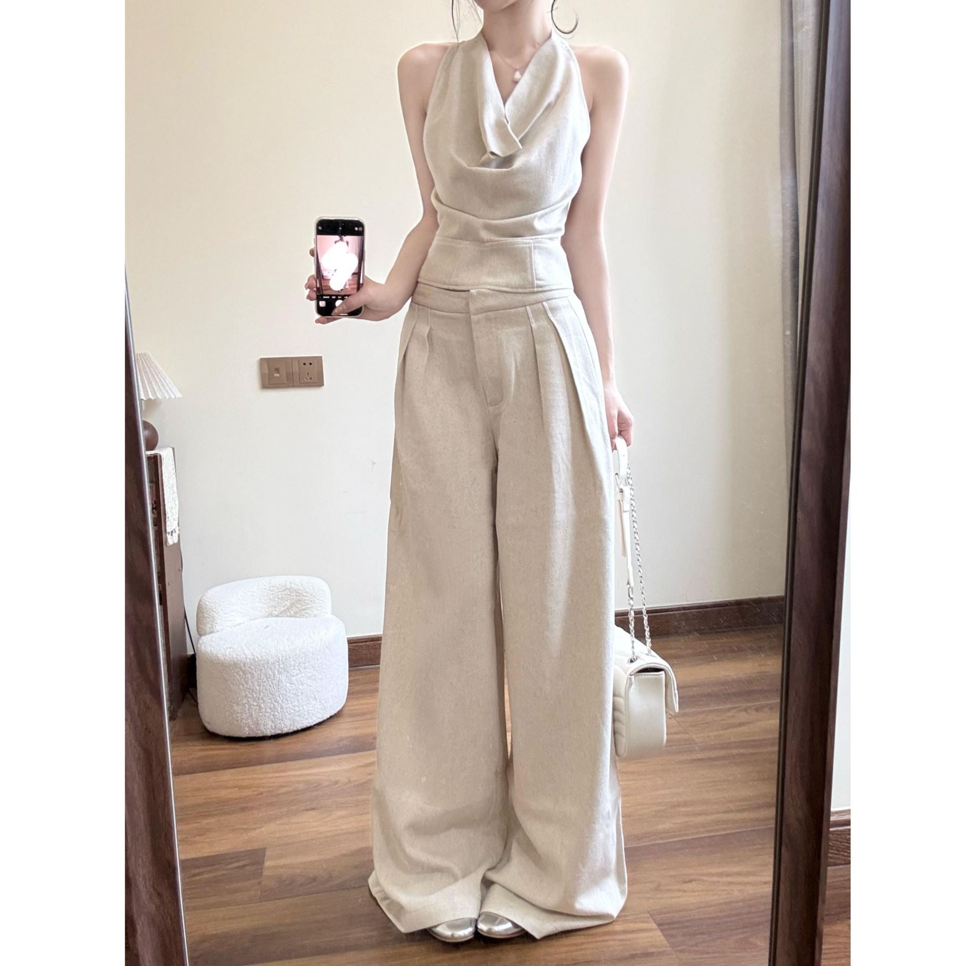 Hang Neck Collar Vest Temperament High-End Blouse Broad Leg Slack Feel To Wear Suit