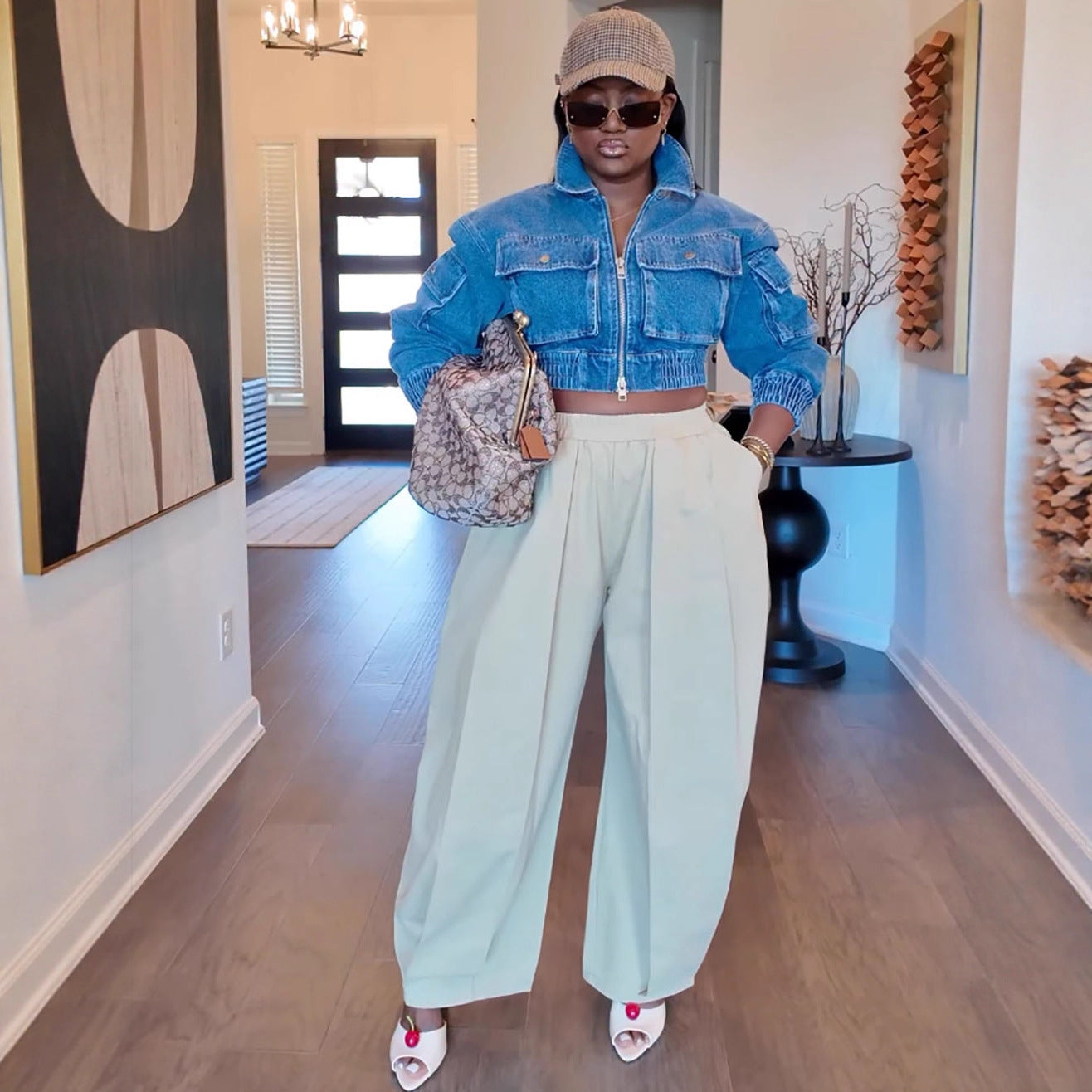 Women's Jeans Set Women's Fashion Blouse Wrapped Corset High-Waisted Denim Shorts HZ0107