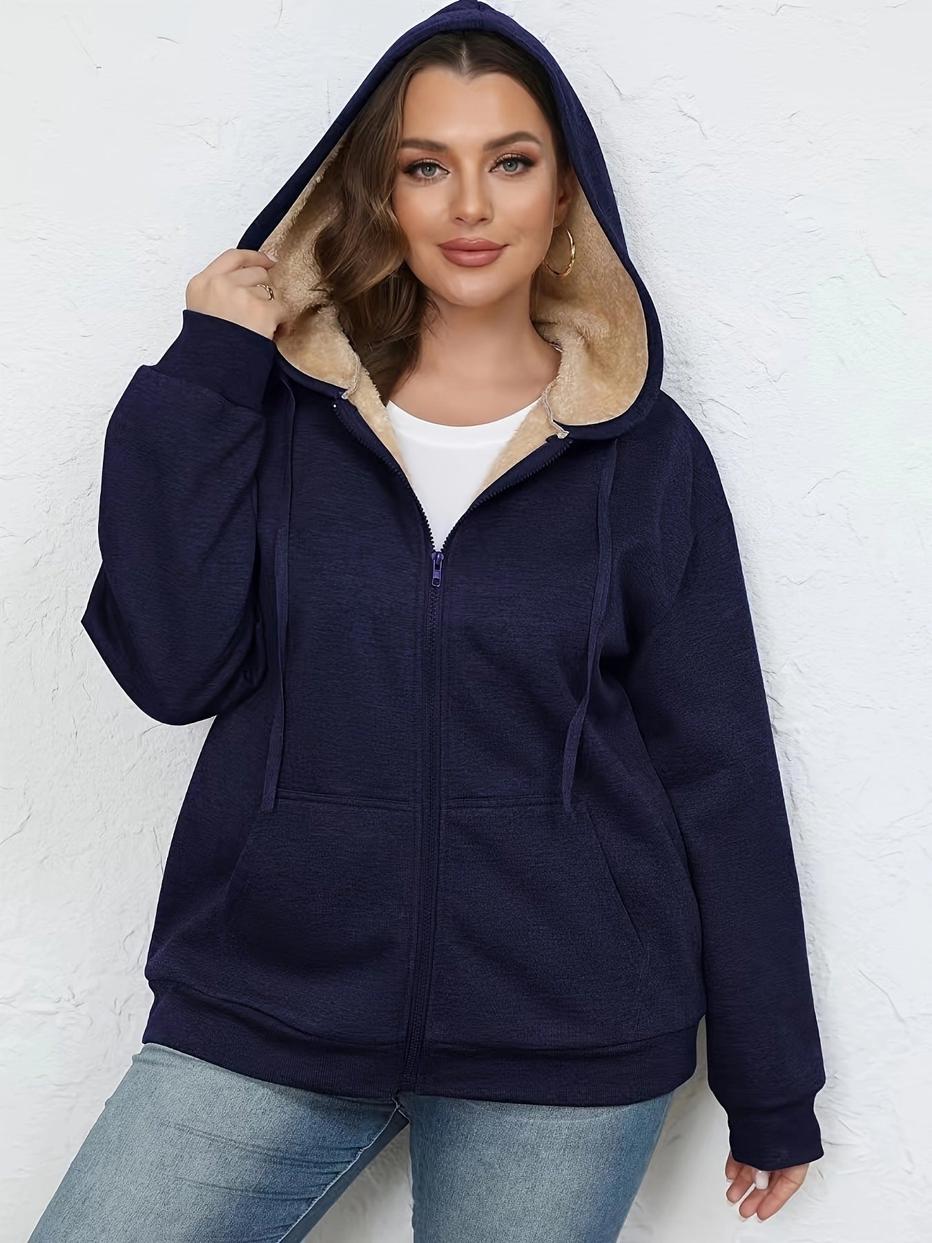 Large Size Women's Winter Explosion Warm Plush Hoodie Jacket