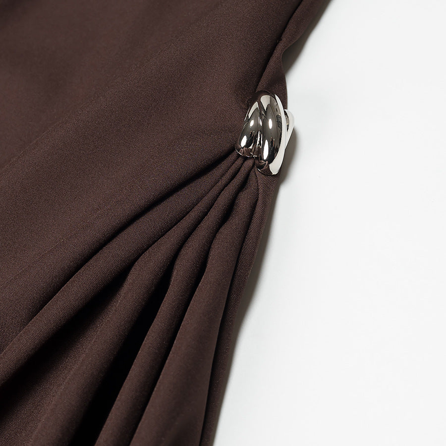AM03011 Lantern Sleeves To Close The Waist 100 Pleated Skirt Comfort Commuter Leisure Dress HZ0107