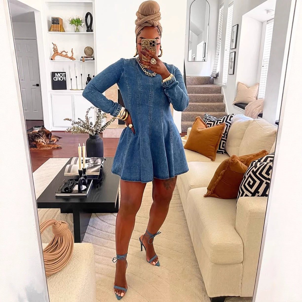 AM030116 Round Collar Three-Dimensional Decorative Folds Skirt Styling Party Party High Waist Dress Dresses HZ0107