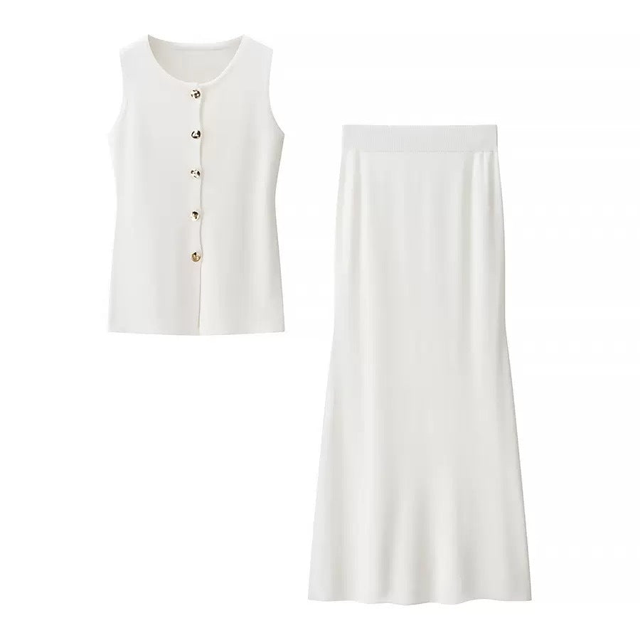 Summer Women's Fashion Bodywear Body Armor Solid Color Body Repair Hip Two Sets Of Knitted Long Skirt Suit Woman HZ0107