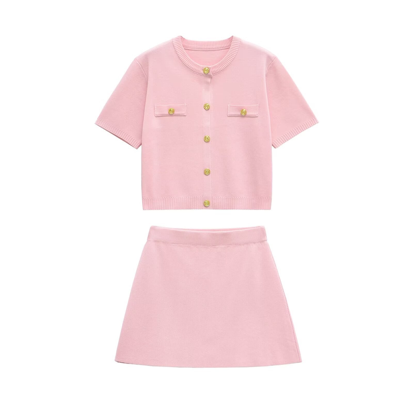 ZARZ Homemade New Women's Classic Short Sleeve Knitted Blouse Flat-Pin Miniskirt 623609 HZ0107