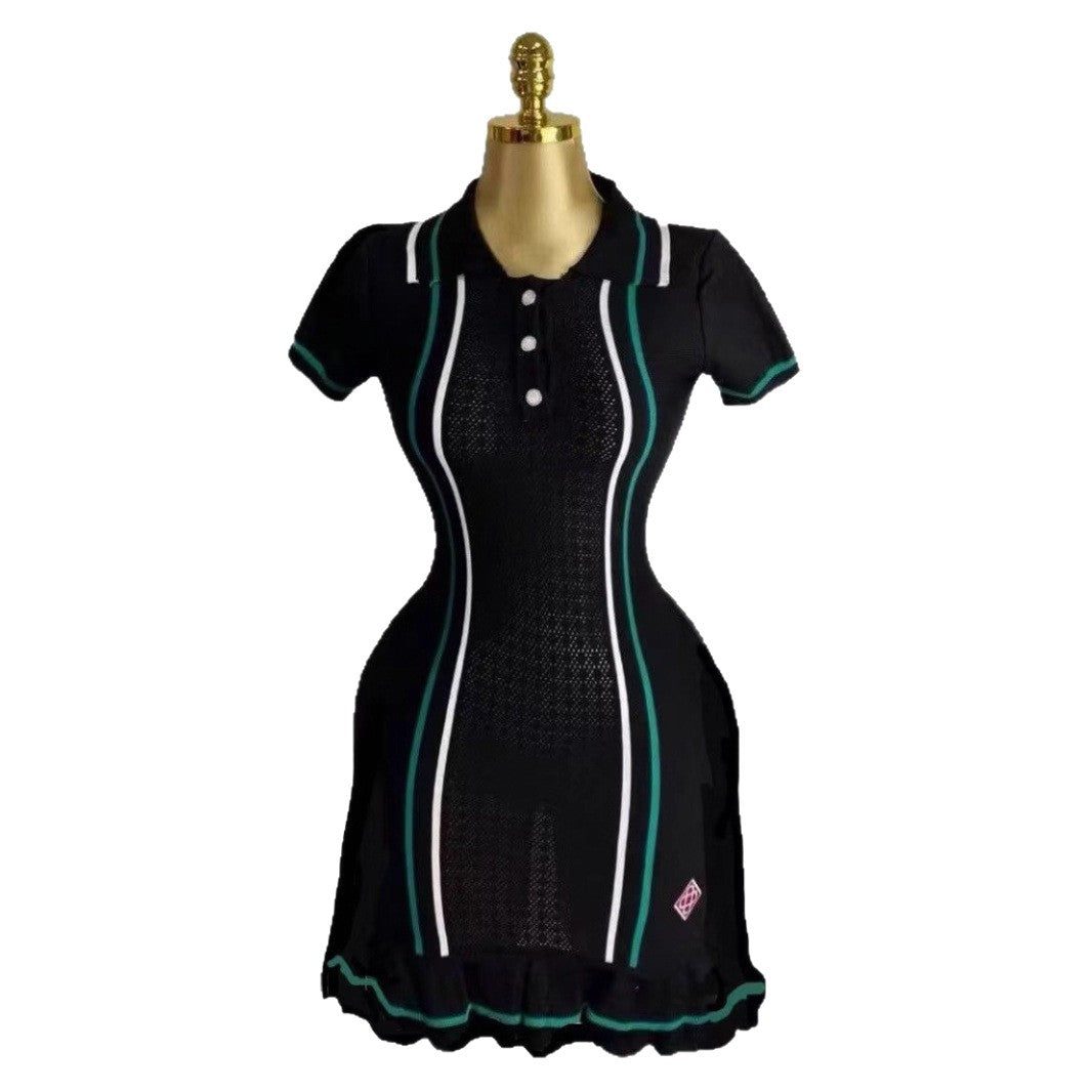 Small Scented Knitted Dress Woman's New French Retro Collared Waist Thin Lotus Leaf-Side Sweater HZ0107