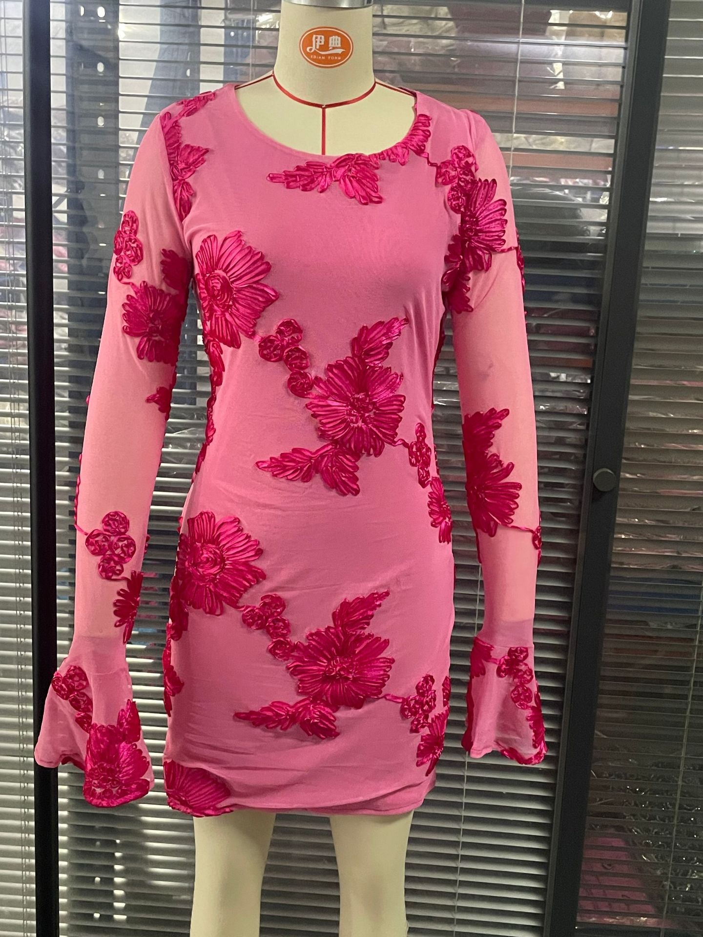 AM030536 Fashion Three-Dimensional Flower Dress Sexy Shoulder Slanted Hundredfolded Dresses HZ0107