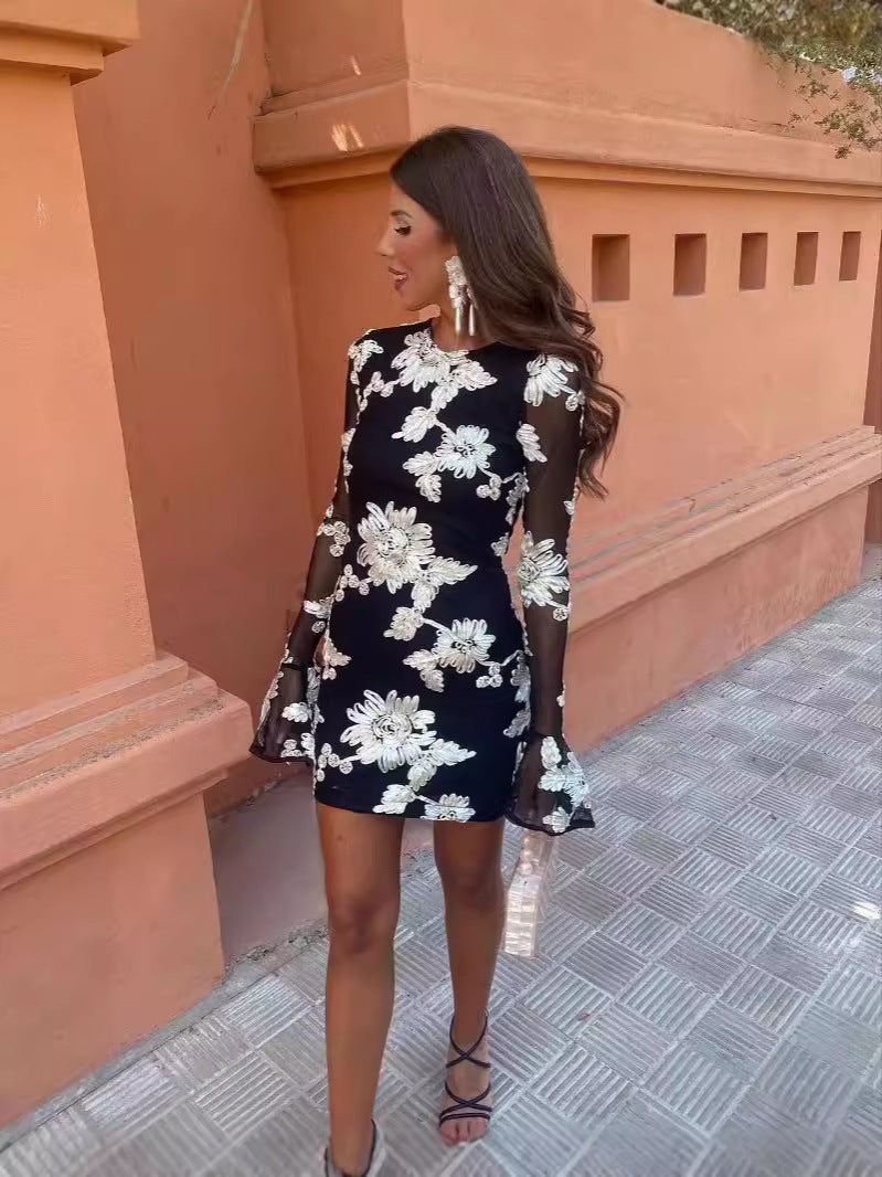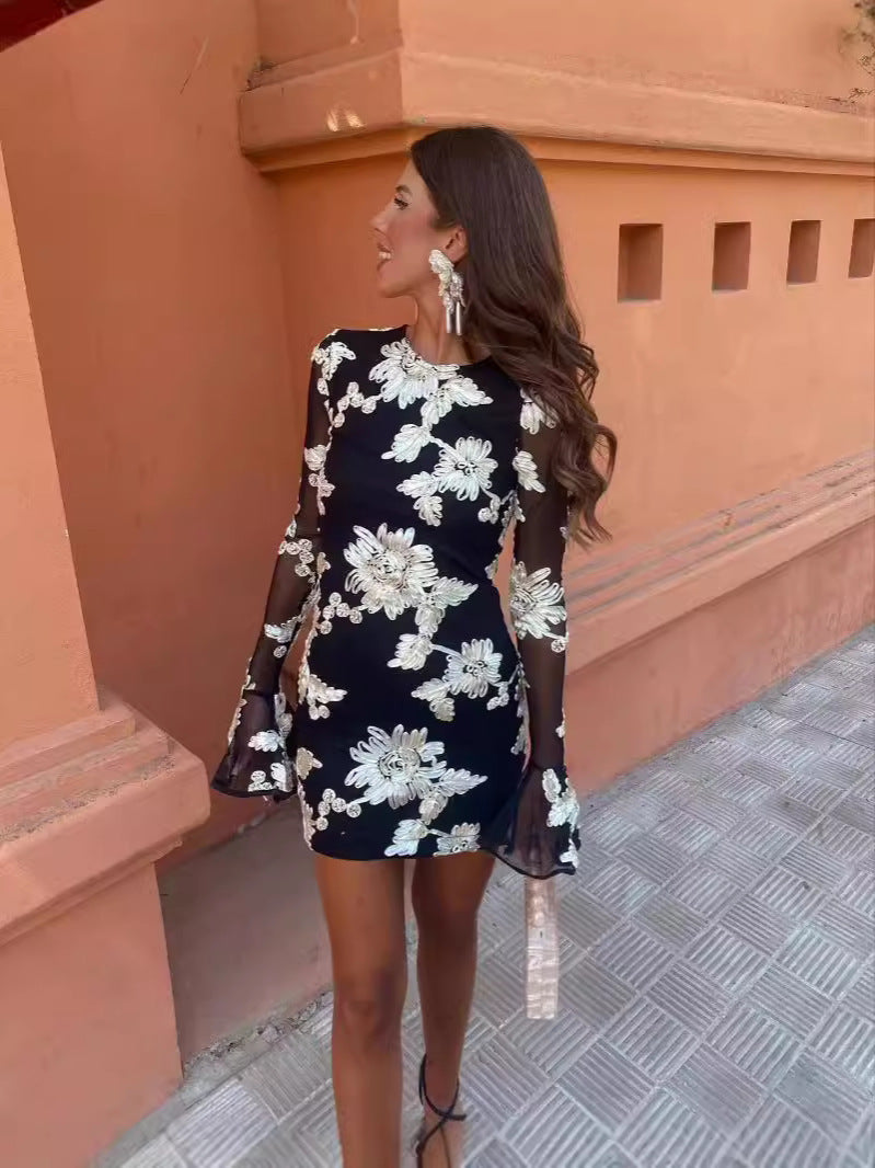 AM040503 Summer New Sexy Hollow Half-High Collar Dress Party Dinner Nail Beads High Waist Dress Dress HZ0107