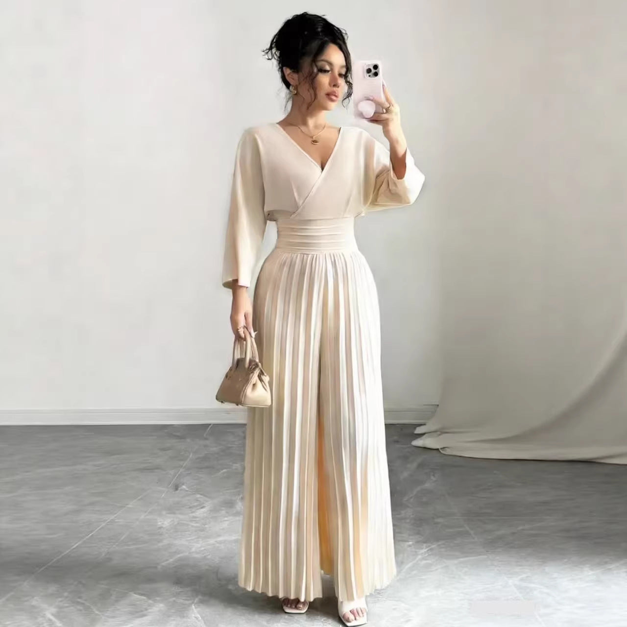 AM03011 Lantern Sleeves To Close The Waist 100 Pleated Skirt Comfort Commuter Leisure Dress HZ0107