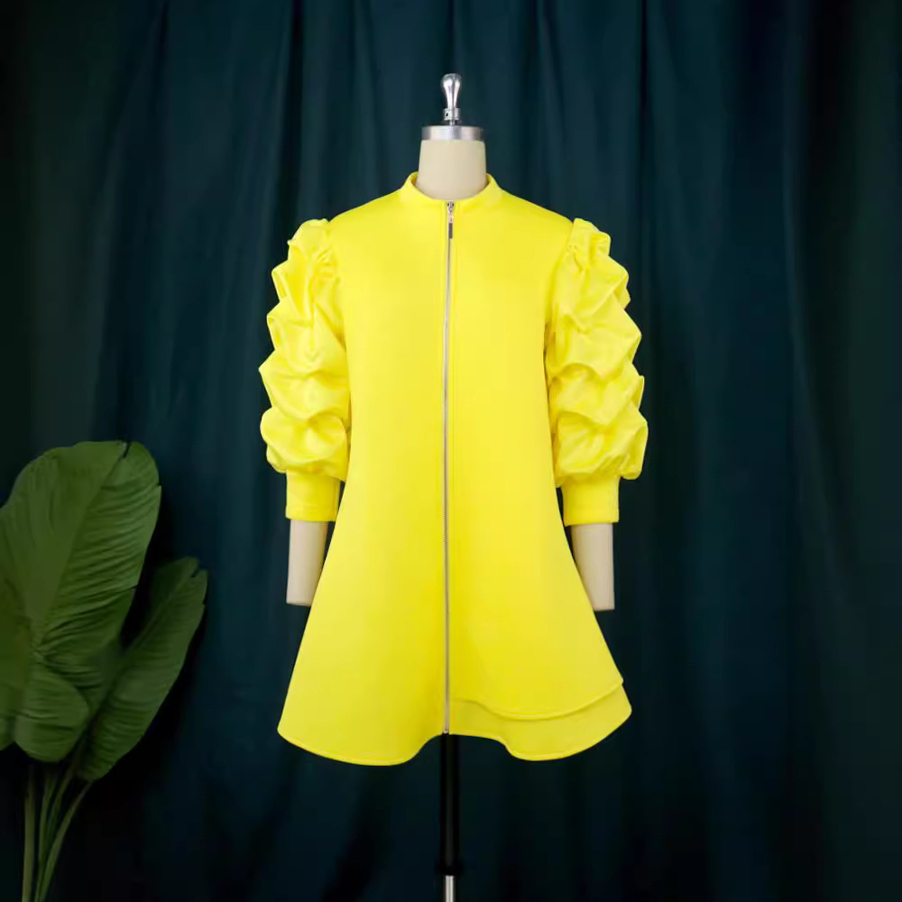 AM03011 Lantern Sleeves To Close The Waist 100 Pleated Skirt Comfort Commuter Leisure Dress HZ0107