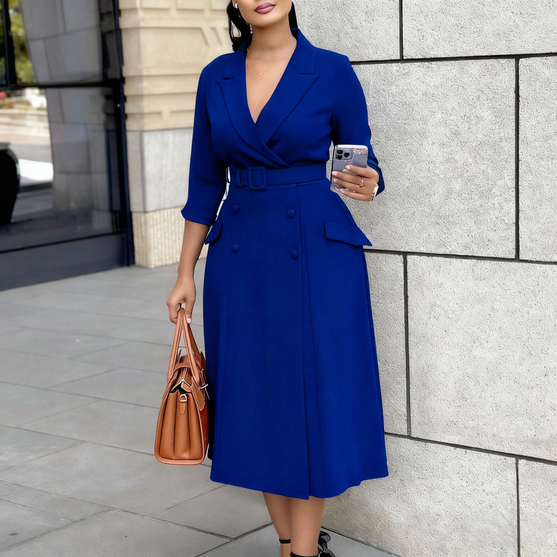 AM03011 Lantern Sleeves To Close The Waist 100 Pleated Skirt Comfort Commuter Leisure Dress HZ0107