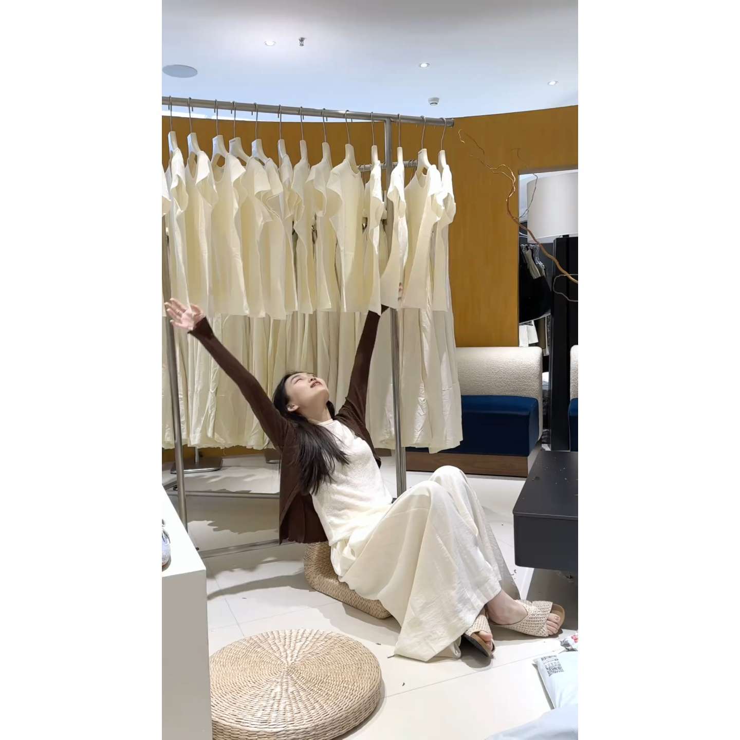 Autumn Temperament Commuting Small Straight-Necked Cardigan Dress Designer Folded Short-Sleeved Top Dress Dress HZ0107