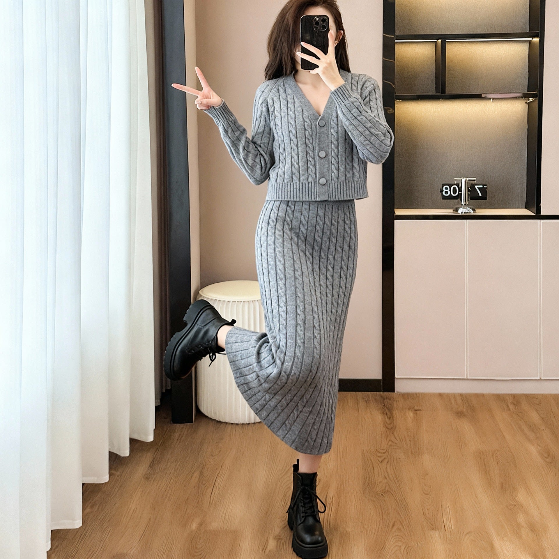Autumn Temperament Commuting Small Straight-Necked Cardigan Dress Designer Folded Short-Sleeved Top Dress Dress HZ0107