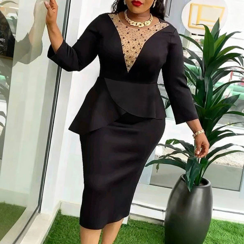 AM040503 Summer New Sexy Hollow Half-High Collar Dress Party Dinner Nail Beads High Waist Dress Dress HZ0107