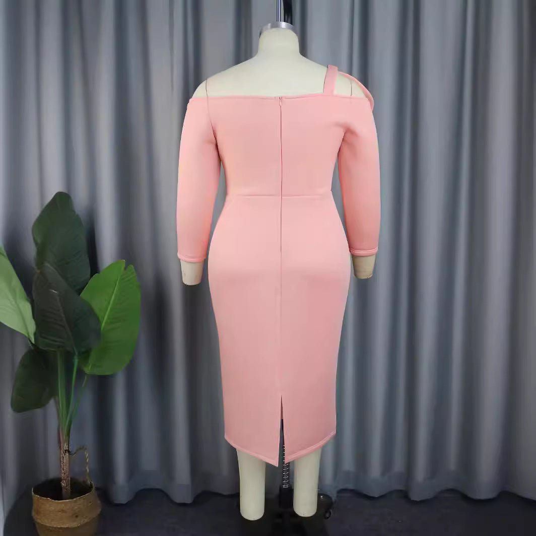 AM030536 Fashion Three-Dimensional Flower Dress Sexy Shoulder Slanted Hundredfolded Dresses HZ0107