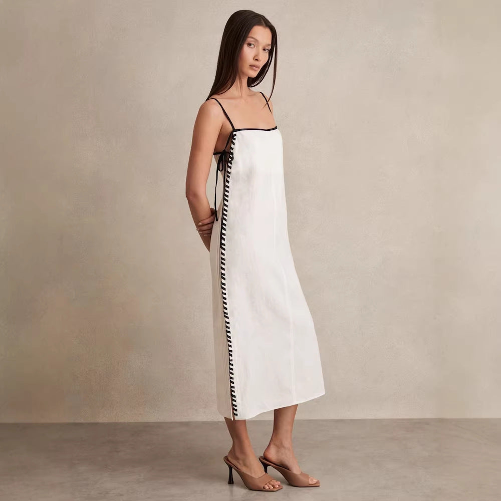 AM221017 Designer Cut Piece Splicing Dress Nail Beaded High-Rise Thin Dress Dress Dress Dress Skirt HZ0107