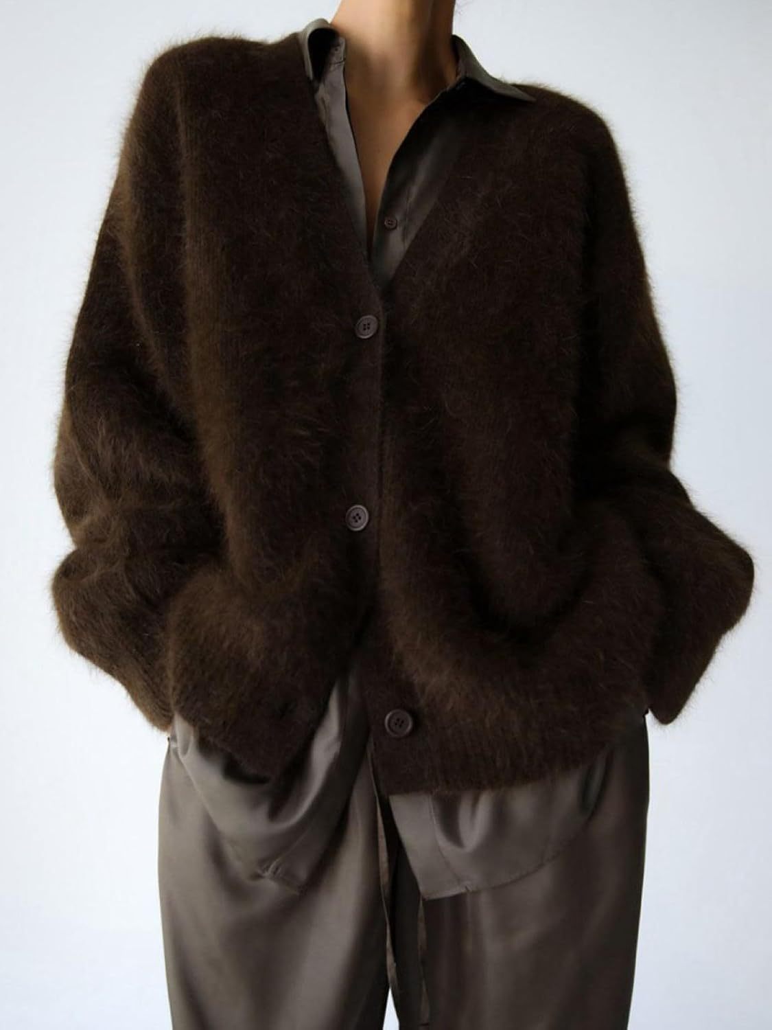 New Women's Imitation Sting Cardigan Women's Lazy Wind Loose Sweater Soft Long-Sleeved Knitted Commuting Style