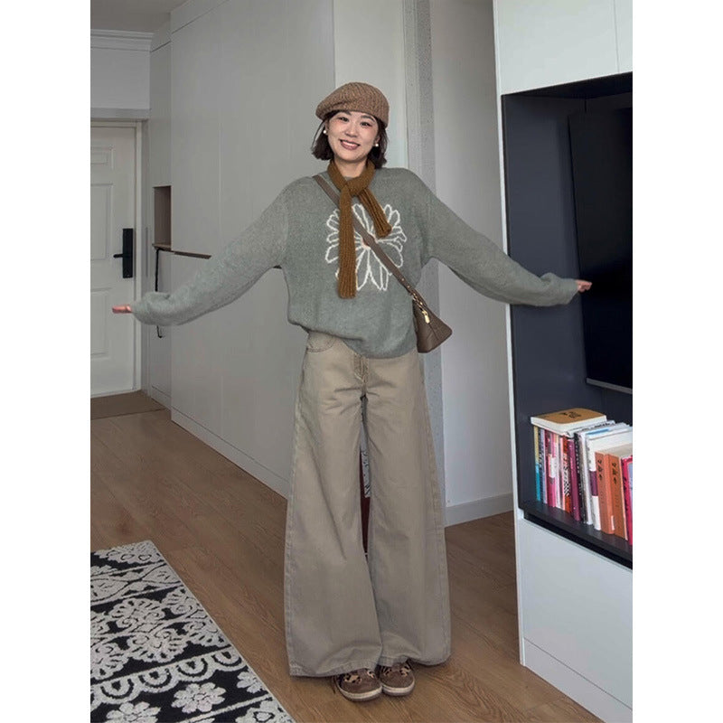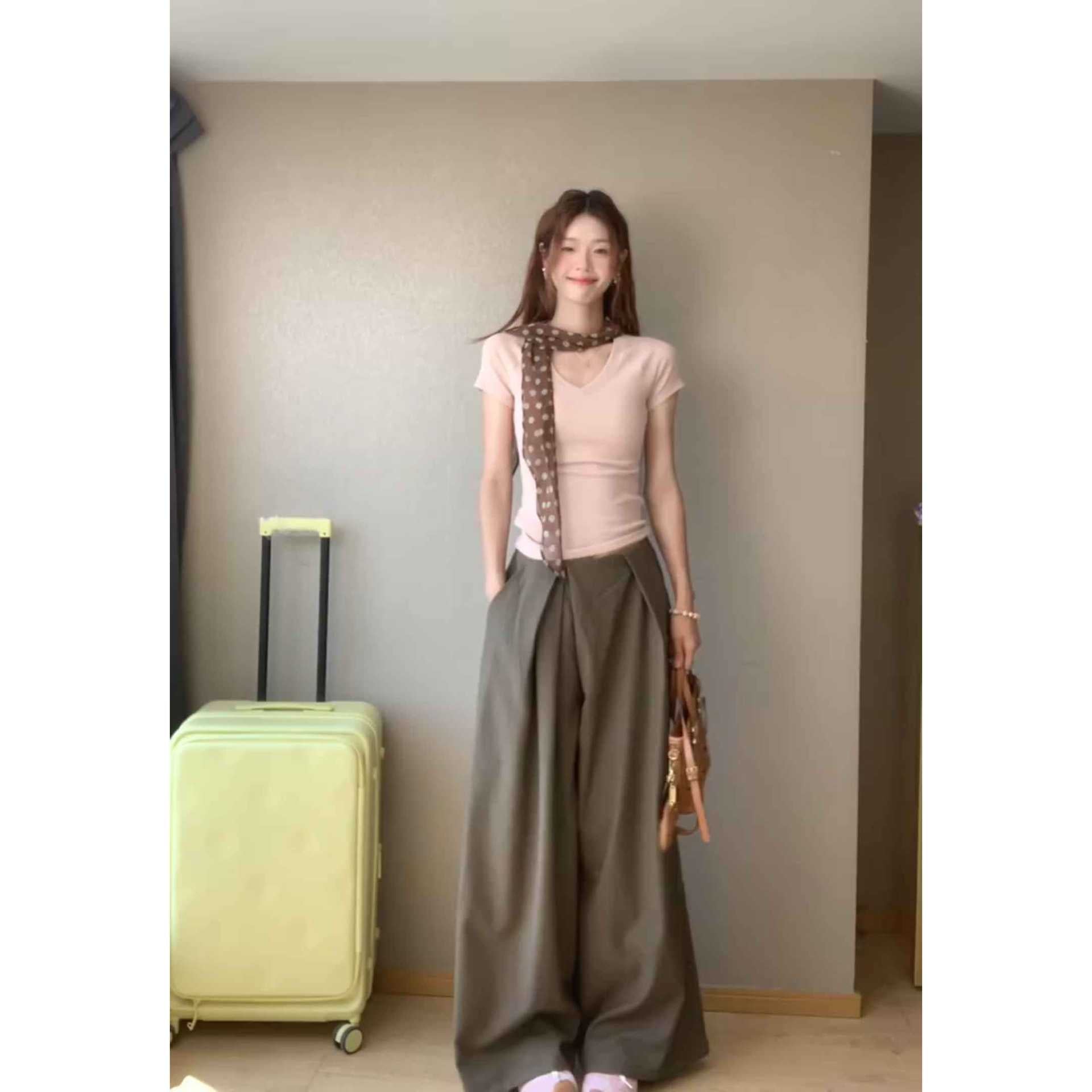 Simple Slim Slimming Waist Sweet Spicy Blouse High-Waisted Penet Broad Leg Trousers Set