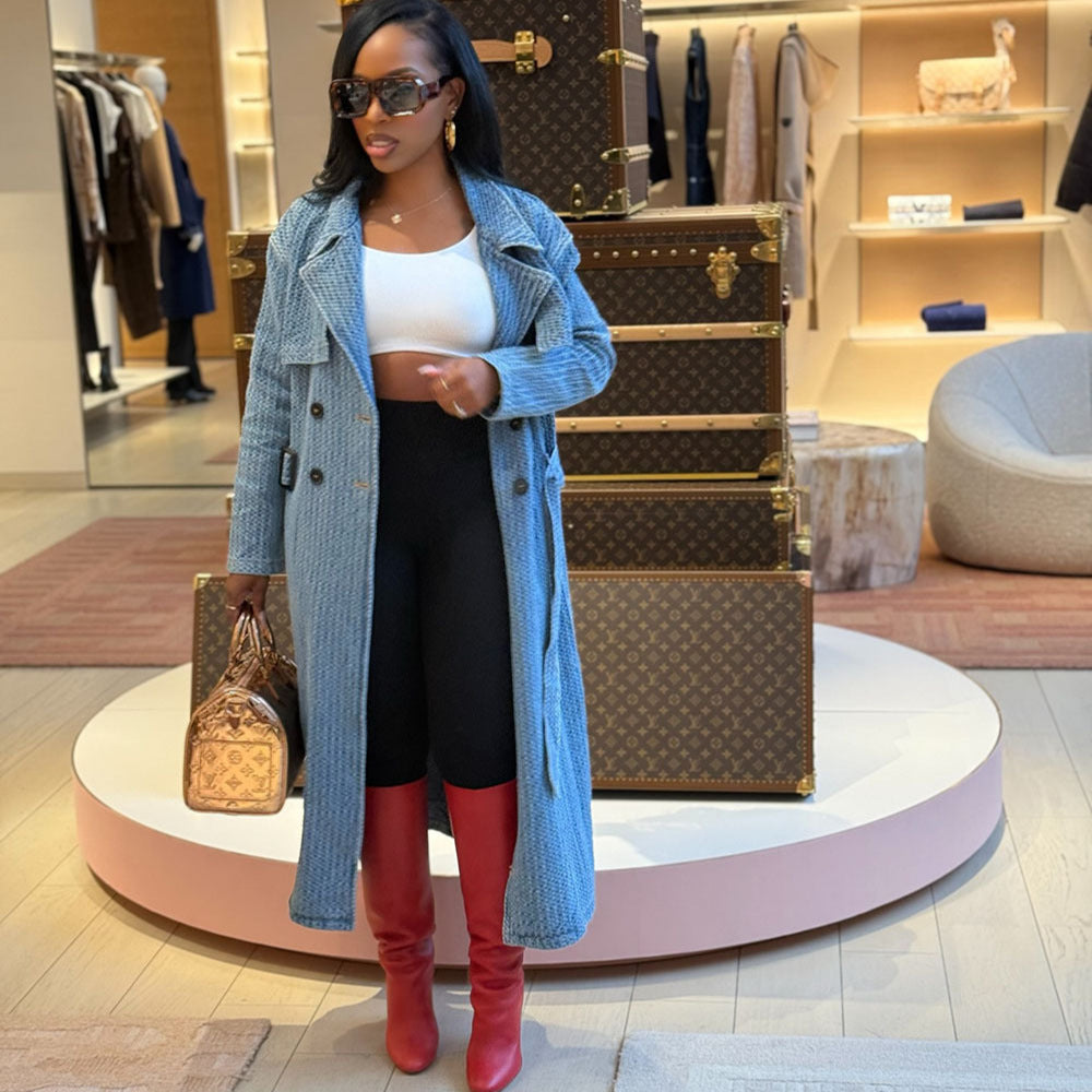 Women's Denim Cloth Jumpsuit Women's Fashion Babes Breasts Multi-Pocket Work Pants HZ0107